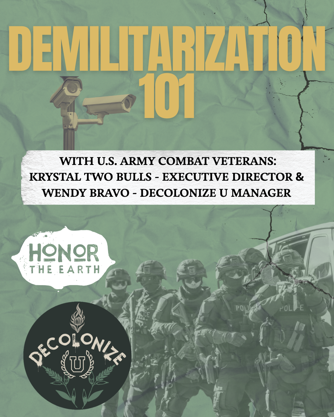 This session will be facilitated and presented by Honor the Earth's two Indigenous women and United States Army combat veterans: our Executive Director Krystal Two Bulls and Decolonize U Manager Wendy Bravo.